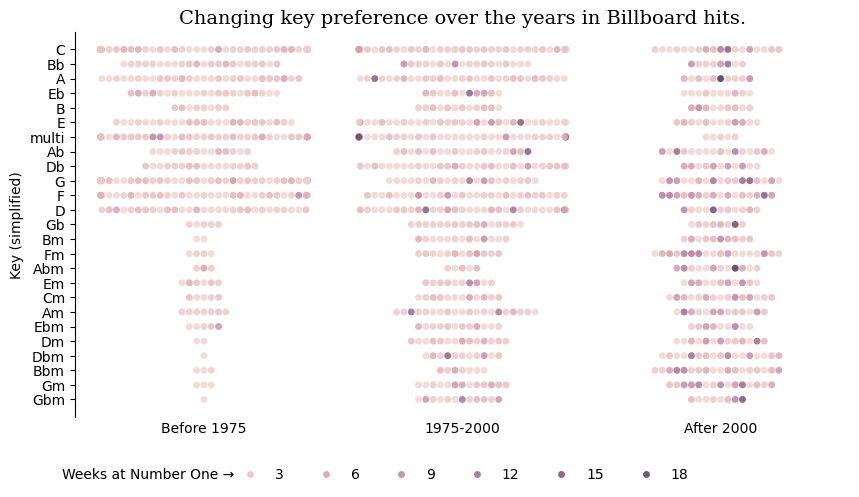 Keys for Billboard hits over the years.